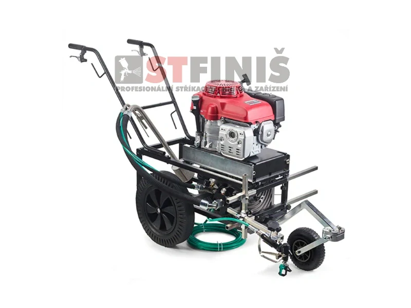 Má směrové přední kolo s 5 různými polohami pro označení přímých čar nebo čar se dvěma různými měřeními poloměru. Díky systému rychlospojky je možné stříkací pistoli vyjmout z centrálního vozíku a použít ji samostatně pro další práce.