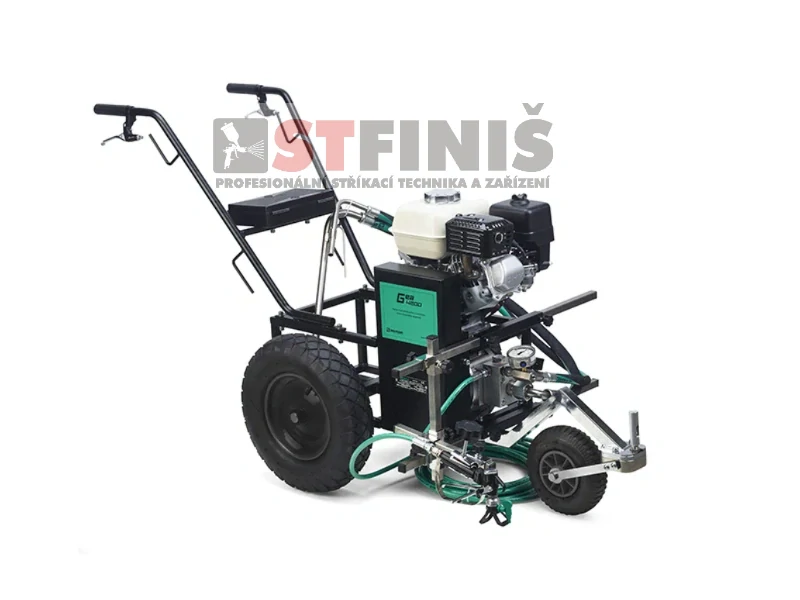 Má směrové přední kolo s 5 různými polohami pro označení přímých čar nebo čar se dvěma různými měřeními poloměru. Díky systému rychlospojky je možné stříkací pistoli vyjmout z centrálního vozíku a použít ji samostatně pro další práce