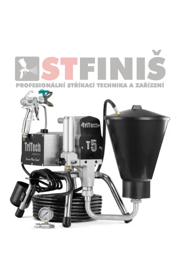 TRITECH T5 je z řady stříkacích zařízení MADE IN USA s využitím nejmodernějších technologií a materiálů při výrobě, zejména pak prémiové nerez oceli a leteckého hliníku. Díky tomu zařízení netrpí korozí a přidává delší životnost jak samotné pumpy, tak celého zařízení, jehož konstrukce je kompletně z kovu.