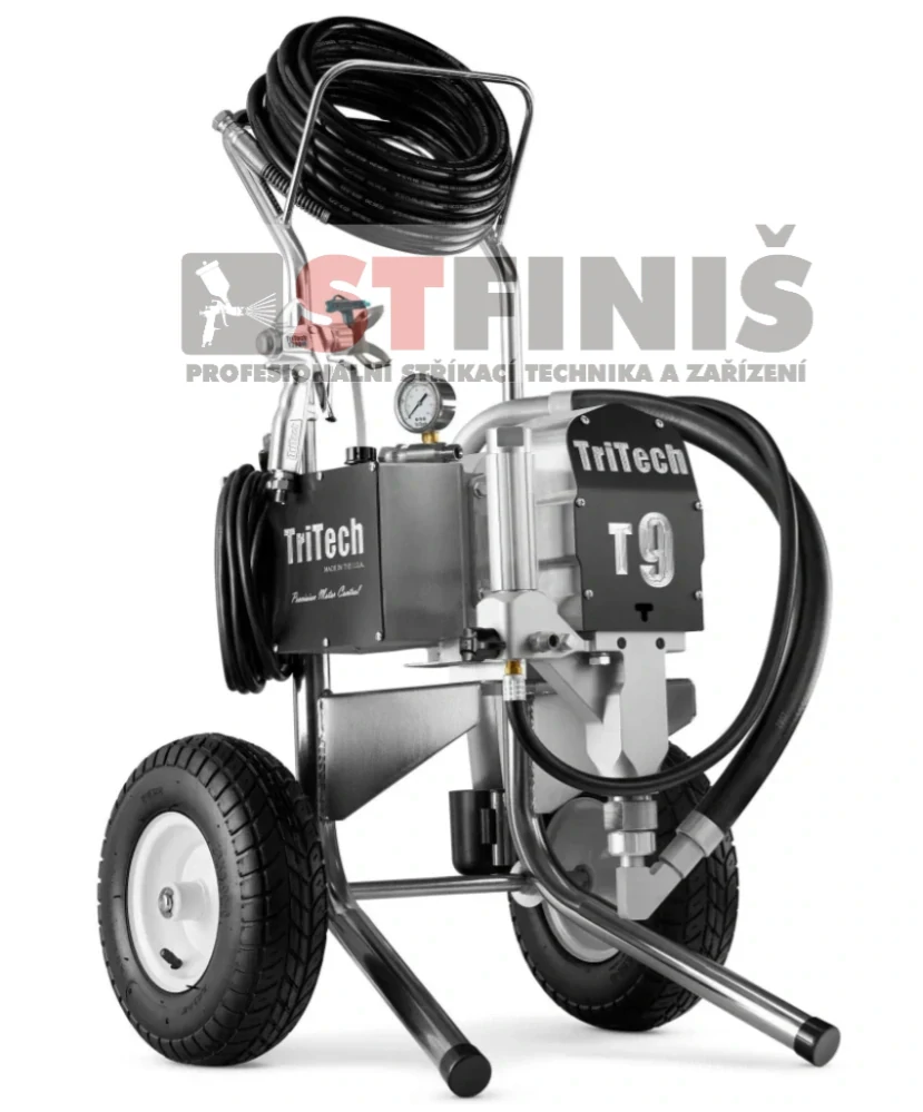 TRITECH T9 je z řady stříkacích zařízení MADE IN USA s využitím nejmodernějších technologií a materiálů při výrobě, zejména pak prémiové nerez oceli a leteckého hliníku. Díky tomu zařízení netrpí korozí a přidává delší životnost jak samotné pumpy, tak celého zařízení, jehož konstrukce je kompletně z kovu.